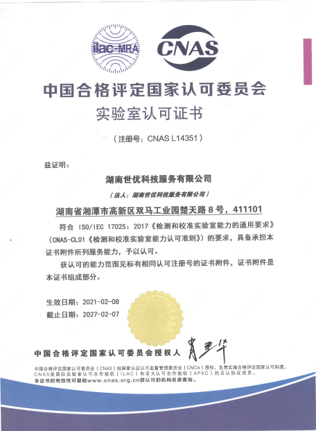 自此,湖南世優(yōu)科技服務(wù)有限公司可以出具具有CMA及CNAS雙認(rèn)可標(biāo)識(shí)的檢測(cè)報(bào)告。