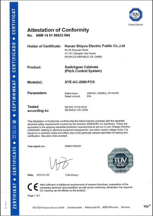 經(jīng)世界權(quán)威認(rèn)證機(jī)構(gòu)德國(guó)TUV的嚴(yán)格評(píng)審,世優(yōu)電氣風(fēng)力發(fā)電機(jī)組電控系統(tǒng)全系列產(chǎn)品榮獲歐盟CE認(rèn)證。